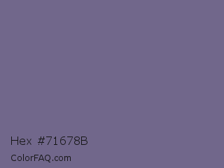 Hex #71678b Color is a normal indigo color and the nearest color is Rum #796989. Hex code #71678b and RGB value is rgb(113,103,139). In RGB color space, this color is composed of 44% red, 40% green, 55% blue, In CMYK color space, this color is composed of 19% cyan, 26% magenta, 0% yellow , 45% black , In HSL color space, this color has a hue angle of 257° , 15% saturation and 47% lightness.