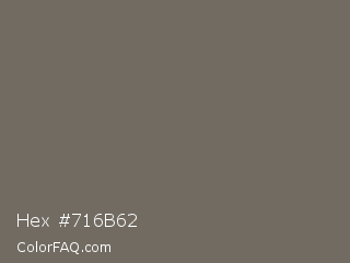 Hex #716b62 Color is a normal orange color and the nearest color is Flint #6f6a61. Hex code #716b62 and RGB value is rgb(113,107,98). In RGB color space, this color is composed of 44% red, 42% green, 38% blue, In CMYK color space, this color is composed of 0% cyan, 5% magenta, 13% yellow , 56% black , In HSL color space, this color has a hue angle of 36° , 7% saturation and 41% lightness.