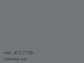 Hex #71777b Color is a normal blue color and the nearest color is Sonic Silver #757575. Hex code #71777b and RGB value is rgb(113,119,123). In RGB color space, this color is composed of 44% red, 47% green, 48% blue, In CMYK color space, this color is composed of 8% cyan, 3% magenta, 0% yellow , 52% black , In HSL color space, this color has a hue angle of 204° , 4% saturation and 46% lightness.