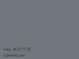 Hex #71777e Color is a normal blue color and the nearest color is Pale Sky #6e7783. Hex code #71777e and RGB value is rgb(113,119,126). In RGB color space, this color is composed of 44% red, 47% green, 49% blue, In CMYK color space, this color is composed of 10% cyan, 6% magenta, 0% yellow , 51% black , In HSL color space, this color has a hue angle of 212° , 5% saturation and 47% lightness.