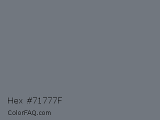 Hex #71777f Color is a normal blue color and the nearest color is Pale Sky #6e7783. Hex code #71777f and RGB value is rgb(113,119,127). In RGB color space, this color is composed of 44% red, 47% green, 50% blue, In CMYK color space, this color is composed of 11% cyan, 6% magenta, 0% yellow , 50% black , In HSL color space, this color has a hue angle of 214° , 6% saturation and 47% lightness.