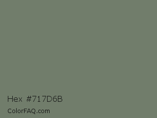 Hex #717d6b Color is a normal green color and the nearest color is Limed Ash #747d63. Hex code #717d6b and RGB value is rgb(113,125,107). In RGB color space, this color is composed of 44% red, 49% green, 42% blue, In CMYK color space, this color is composed of 10% cyan, 0% magenta, 14% yellow , 51% black , In HSL color space, this color has a hue angle of 100° , 8% saturation and 45% lightness.