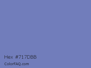 Hex #717dbb Color is a normal blue color and the nearest color is Wild Blue Yonder #7a89b8. Hex code #717dbb and RGB value is rgb(113,125,187). In RGB color space, this color is composed of 44% red, 49% green, 73% blue, In CMYK color space, this color is composed of 40% cyan, 33% magenta, 0% yellow , 27% black , In HSL color space, this color has a hue angle of 230° , 35% saturation and 59% lightness.