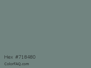 Hex #718480 Color is a normal cyan color and the nearest color is Sirocco #718080. Hex code #718480 and RGB value is rgb(113,132,128). In RGB color space, this color is composed of 44% red, 52% green, 50% blue, In CMYK color space, this color is composed of 14% cyan, 0% magenta, 3% yellow , 48% black , In HSL color space, this color has a hue angle of 167° , 8% saturation and 48% lightness.