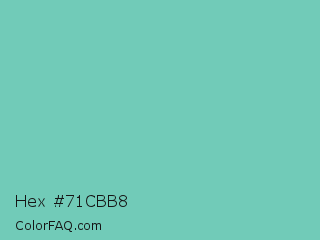 Hex #71cbb8 Color is a light cyan color and the nearest color is Downy #6fd0c5. Hex code #71cbb8 and RGB value is rgb(113,203,184). In RGB color space, this color is composed of 44% red, 80% green, 72% blue, In CMYK color space, this color is composed of 44% cyan, 0% magenta, 9% yellow , 20% black , In HSL color space, this color has a hue angle of 167° , 46% saturation and 62% lightness.