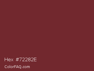 Hex #72282e Color is a dark red color and the nearest color is Wine #722f37. Hex code #72282e and RGB value is rgb(114,40,46). In RGB color space, this color is composed of 45% red, 16% green, 18% blue, In CMYK color space, this color is composed of 0% cyan, 65% magenta, 60% yellow , 55% black , In HSL color space, this color has a hue angle of 355° , 48% saturation and 30% lightness.