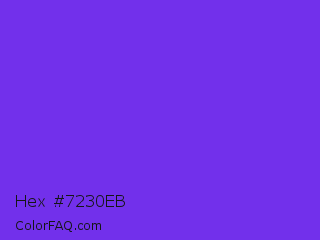 Hex #7230eb Color is a normal violet color and the nearest color is Blue Violet #8a2be2. Hex code #7230eb and RGB value is rgb(114,48,235). In RGB color space, this color is composed of 45% red, 19% green, 92% blue, In CMYK color space, this color is composed of 51% cyan, 80% magenta, 0% yellow , 8% black , In HSL color space, this color has a hue angle of 261° , 82% saturation and 55% lightness.