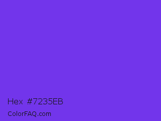 Hex #7235eb Color is a normal indigo color and the nearest color is Blue Violet #8a2be2. Hex code #7235eb and RGB value is rgb(114,53,235). In RGB color space, this color is composed of 45% red, 21% green, 92% blue, In CMYK color space, this color is composed of 51% cyan, 77% magenta, 0% yellow , 8% black , In HSL color space, this color has a hue angle of 260° , 82% saturation and 56% lightness.