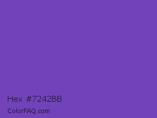 Hex #7242bb Color is a normal violet color and the nearest color is Studio #714ab2. Hex code #7242bb and RGB value is rgb(114,66,187). In RGB color space, this color is composed of 45% red, 26% green, 73% blue, In CMYK color space, this color is composed of 39% cyan, 65% magenta, 0% yellow , 27% black , In HSL color space, this color has a hue angle of 264° , 48% saturation and 50% lightness.