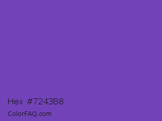 Hex #7243b8 Color is a normal violet color and the nearest color is Studio #714ab2. Hex code #7243b8 and RGB value is rgb(114,67,184). In RGB color space, this color is composed of 45% red, 26% green, 72% blue, In CMYK color space, this color is composed of 38% cyan, 64% magenta, 0% yellow , 28% black , In HSL color space, this color has a hue angle of 264° , 47% saturation and 49% lightness.