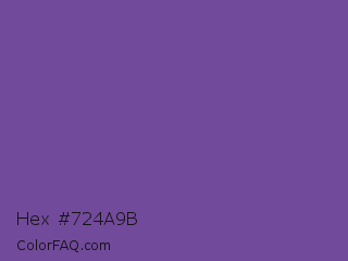 Hex #724a9b Color is a normal violet color and the nearest color is Dark Lavender #734f96. Hex code #724a9b and RGB value is rgb(114,74,155). In RGB color space, this color is composed of 45% red, 29% green, 61% blue, In CMYK color space, this color is composed of 26% cyan, 52% magenta, 0% yellow , 39% black , In HSL color space, this color has a hue angle of 270° , 35% saturation and 45% lightness.
