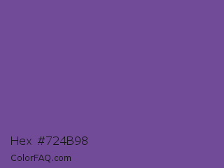 Hex #724b98 Color is a normal violet color and the nearest color is Dark Lavender #734f96. Hex code #724b98 and RGB value is rgb(114,75,152). In RGB color space, this color is composed of 45% red, 29% green, 60% blue, In CMYK color space, this color is composed of 25% cyan, 51% magenta, 0% yellow , 40% black , In HSL color space, this color has a hue angle of 270° , 34% saturation and 45% lightness.