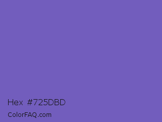 Hex #725dbd Color is a normal indigo color and the nearest color is Fuchsia Blue #7a58c1. Hex code #725dbd and RGB value is rgb(114,93,189). In RGB color space, this color is composed of 45% red, 36% green, 74% blue, In CMYK color space, this color is composed of 40% cyan, 51% magenta, 0% yellow , 26% black , In HSL color space, this color has a hue angle of 253° , 42% saturation and 55% lightness.