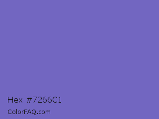 Hex #7266c1 Color is a normal indigo color and the nearest color is Toolbox #746cc0. Hex code #7266c1 and RGB value is rgb(114,102,193). In RGB color space, this color is composed of 45% red, 40% green, 76% blue, In CMYK color space, this color is composed of 41% cyan, 47% magenta, 0% yellow , 24% black , In HSL color space, this color has a hue angle of 248° , 42% saturation and 58% lightness.
