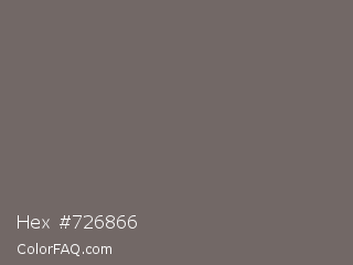Hex #726866 Color is a normal red color and the nearest color is Flint #6f6a61. Hex code #726866 and RGB value is rgb(114,104,102). In RGB color space, this color is composed of 45% red, 41% green, 40% blue, In CMYK color space, this color is composed of 0% cyan, 9% magenta, 11% yellow , 55% black , In HSL color space, this color has a hue angle of 10° , 6% saturation and 42% lightness.