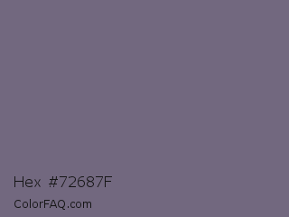 Hex #72687f Color is a normal violet color and the nearest color is Old Lavender #796878. Hex code #72687f and RGB value is rgb(114,104,127). In RGB color space, this color is composed of 45% red, 41% green, 50% blue, In CMYK color space, this color is composed of 10% cyan, 18% magenta, 0% yellow , 50% black , In HSL color space, this color has a hue angle of 266° , 10% saturation and 45% lightness.