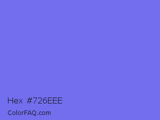 Hex #726eee Color is a light indigo color and the nearest color is Medium Slate Blue #7b68ee. Hex code #726eee and RGB value is rgb(114,110,238). In RGB color space, this color is composed of 45% red, 43% green, 93% blue, In CMYK color space, this color is composed of 52% cyan, 54% magenta, 0% yellow , 7% black , In HSL color space, this color has a hue angle of 242° , 79% saturation and 68% lightness.