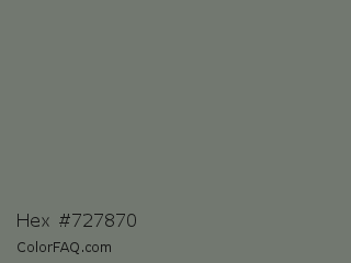 Hex #727870 Color is a normal green color and the nearest color is Nickel #727472. Hex code #727870 and RGB value is rgb(114,120,112). In RGB color space, this color is composed of 45% red, 47% green, 44% blue, In CMYK color space, this color is composed of 5% cyan, 0% magenta, 7% yellow , 53% black , In HSL color space, this color has a hue angle of 105° , 3% saturation and 45% lightness.