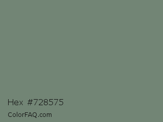 Hex #728575 Color is a normal green color and the nearest color is Smoke #738276. Hex code #728575 and RGB value is rgb(114,133,117). In RGB color space, this color is composed of 45% red, 52% green, 46% blue, In CMYK color space, this color is composed of 14% cyan, 0% magenta, 12% yellow , 48% black , In HSL color space, this color has a hue angle of 129° , 8% saturation and 48% lightness.
