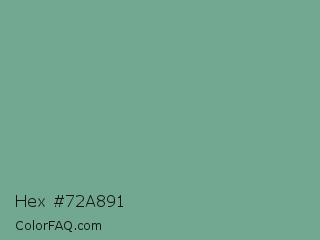Hex #72a891 Color is a normal green color and the nearest color is Bay Leaf #7da98d. Hex code #72a891 and RGB value is rgb(114,168,145). In RGB color space, this color is composed of 45% red, 66% green, 57% blue, In CMYK color space, this color is composed of 32% cyan, 0% magenta, 14% yellow , 34% black , In HSL color space, this color has a hue angle of 154° , 24% saturation and 55% lightness.