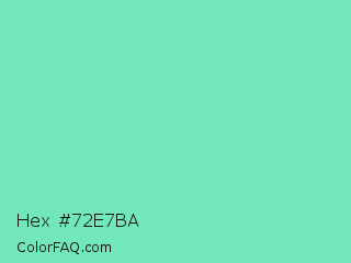 Hex #72e7ba Color is a light green color and the nearest color is Bermuda #7dd8c6. Hex code #72e7ba and RGB value is rgb(114,231,186). In RGB color space, this color is composed of 45% red, 91% green, 73% blue, In CMYK color space, this color is composed of 51% cyan, 0% magenta, 19% yellow , 9% black , In HSL color space, this color has a hue angle of 157° , 71% saturation and 68% lightness.