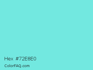 Hex #72e8e0 Color is a light cyan color and the nearest color is Aquamarine Blue #71d9e2. Hex code #72e8e0 and RGB value is rgb(114,232,224). In RGB color space, this color is composed of 45% red, 91% green, 88% blue, In CMYK color space, this color is composed of 51% cyan, 0% magenta, 3% yellow , 9% black , In HSL color space, this color has a hue angle of 176° , 72% saturation and 68% lightness.