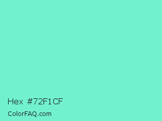 Hex #72f1cf Color is a light cyan color and the nearest color is Aquamarine #7fffd4. Hex code #72f1cf and RGB value is rgb(114,241,207). In RGB color space, this color is composed of 45% red, 95% green, 81% blue, In CMYK color space, this color is composed of 53% cyan, 0% magenta, 14% yellow , 5% black , In HSL color space, this color has a hue angle of 164° , 82% saturation and 70% lightness.