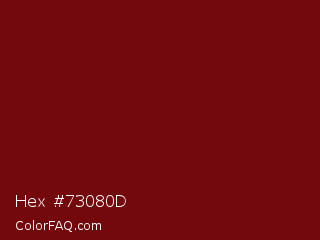 Hex #73080d Color is a dark red color and the nearest color is Venetian Red #72010f. Hex code #73080d and RGB value is rgb(115,8,13). In RGB color space, this color is composed of 45% red, 3% green, 5% blue, In CMYK color space, this color is composed of 0% cyan, 93% magenta, 89% yellow , 55% black , In HSL color space, this color has a hue angle of 357° , 87% saturation and 24% lightness.