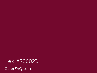 Hex #73082d Color is a dark rose color and the nearest color is Black Rose #67032d. Hex code #73082d and RGB value is rgb(115,8,45). In RGB color space, this color is composed of 45% red, 3% green, 18% blue, In CMYK color space, this color is composed of 0% cyan, 93% magenta, 61% yellow , 55% black , In HSL color space, this color has a hue angle of 339° , 87% saturation and 24% lightness.