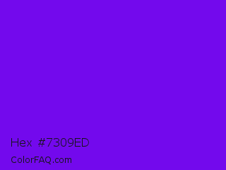 Hex #7309ed Color is a normal violet color and the nearest color is Electric Indigo #6f00ff. Hex code #7309ed and RGB value is rgb(115,9,237). In RGB color space, this color is composed of 45% red, 4% green, 93% blue, In CMYK color space, this color is composed of 51% cyan, 96% magenta, 0% yellow , 7% black , In HSL color space, this color has a hue angle of 268° , 93% saturation and 48% lightness.