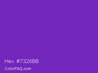 Hex #7326bb Color is a normal purple color and the nearest color is Purple Heart Crayola #652dc1. Hex code #7326bb and RGB value is rgb(115,38,187). In RGB color space, this color is composed of 45% red, 15% green, 73% blue, In CMYK color space, this color is composed of 39% cyan, 80% magenta, 0% yellow , 27% black , In HSL color space, this color has a hue angle of 271° , 66% saturation and 44% lightness.