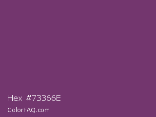 Hex #73366e Color is a normal magenta color and the nearest color is Midnight #702670. Hex code #73366e and RGB value is rgb(115,54,110). In RGB color space, this color is composed of 45% red, 21% green, 43% blue, In CMYK color space, this color is composed of 0% cyan, 53% magenta, 4% yellow , 55% black , In HSL color space, this color has a hue angle of 305° , 36% saturation and 33% lightness.
