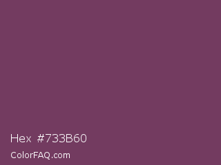 Hex #733b60 Color is a normal magenta color and the nearest color is Cosmic #76395d. Hex code #733b60 and RGB value is rgb(115,59,96). In RGB color space, this color is composed of 45% red, 23% green, 38% blue, In CMYK color space, this color is composed of 0% cyan, 49% magenta, 17% yellow , 55% black , In HSL color space, this color has a hue angle of 320° , 32% saturation and 34% lightness.