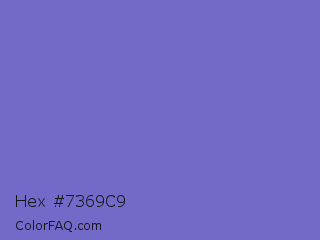 Hex #7369c9 Color is a normal indigo color and the nearest color is Blue Marguerite #7666c6. Hex code #7369c9 and RGB value is rgb(115,105,201). In RGB color space, this color is composed of 45% red, 41% green, 79% blue, In CMYK color space, this color is composed of 43% cyan, 48% magenta, 0% yellow , 21% black , In HSL color space, this color has a hue angle of 246° , 47% saturation and 60% lightness.