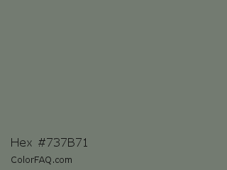 Hex #737b71 Color is a normal green color and the nearest color is Nickel #727472. Hex code #737b71 and RGB value is rgb(115,123,113). In RGB color space, this color is composed of 45% red, 48% green, 44% blue, In CMYK color space, this color is composed of 7% cyan, 0% magenta, 8% yellow , 52% black , In HSL color space, this color has a hue angle of 108° , 4% saturation and 46% lightness.