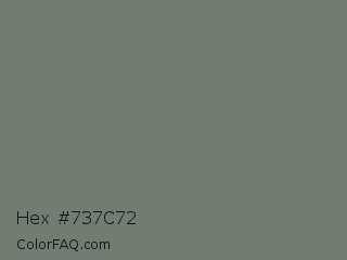 Hex #737c72 Color is a normal green color and the nearest color is Smoke #738276. Hex code #737c72 and RGB value is rgb(115,124,114). In RGB color space, this color is composed of 45% red, 49% green, 45% blue, In CMYK color space, this color is composed of 7% cyan, 0% magenta, 8% yellow , 51% black , In HSL color space, this color has a hue angle of 114° , 4% saturation and 47% lightness.