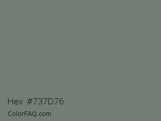 Hex #737d76 Color is a normal green color and the nearest color is Smoke #738276. Hex code #737d76 and RGB value is rgb(115,125,118). In RGB color space, this color is composed of 45% red, 49% green, 46% blue, In CMYK color space, this color is composed of 8% cyan, 0% magenta, 6% yellow , 51% black , In HSL color space, this color has a hue angle of 138° , 4% saturation and 47% lightness.