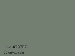 Hex #737f71 Color is a normal green color and the nearest color is Smoke #738276. Hex code #737f71 and RGB value is rgb(115,127,113). In RGB color space, this color is composed of 45% red, 50% green, 44% blue, In CMYK color space, this color is composed of 9% cyan, 0% magenta, 11% yellow , 50% black , In HSL color space, this color has a hue angle of 111° , 6% saturation and 47% lightness.