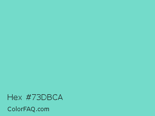 Hex #73dbca Color is a light cyan color and the nearest color is Bermuda #7dd8c6. Hex code #73dbca and RGB value is rgb(115,219,202). In RGB color space, this color is composed of 45% red, 86% green, 79% blue, In CMYK color space, this color is composed of 47% cyan, 0% magenta, 8% yellow , 14% black , In HSL color space, this color has a hue angle of 170° , 59% saturation and 65% lightness.