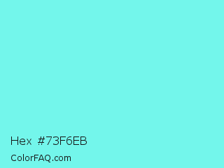 Hex #73f6eb Color is a light cyan color and the nearest color is Electric Blue #7df9ff. Hex code #73f6eb and RGB value is rgb(115,246,235). In RGB color space, this color is composed of 45% red, 96% green, 92% blue, In CMYK color space, this color is composed of 53% cyan, 0% magenta, 4% yellow , 4% black , In HSL color space, this color has a hue angle of 175° , 88% saturation and 71% lightness.
