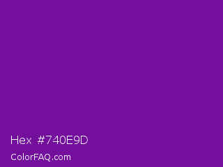 Hex #740e9d Color is a normal purple color and the nearest color is Purple #660099. Hex code #740e9d and RGB value is rgb(116,14,157). In RGB color space, this color is composed of 45% red, 5% green, 62% blue, In CMYK color space, this color is composed of 26% cyan, 91% magenta, 0% yellow , 38% black , In HSL color space, this color has a hue angle of 283° , 84% saturation and 34% lightness.