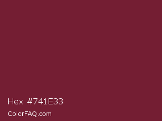 Hex #741e33 Color is a dark red color and the nearest color is Claret #7f1734. Hex code #741e33 and RGB value is rgb(116,30,51). In RGB color space, this color is composed of 45% red, 12% green, 20% blue, In CMYK color space, this color is composed of 0% cyan, 74% magenta, 56% yellow , 55% black , In HSL color space, this color has a hue angle of 345° , 59% saturation and 29% lightness.