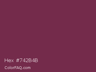 Hex #742b4b Color is a normal rose color and the nearest color is Tawny Port #692545. Hex code #742b4b and RGB value is rgb(116,43,75). In RGB color space, this color is composed of 45% red, 17% green, 29% blue, In CMYK color space, this color is composed of 0% cyan, 63% magenta, 35% yellow , 55% black , In HSL color space, this color has a hue angle of 334° , 46% saturation and 31% lightness.