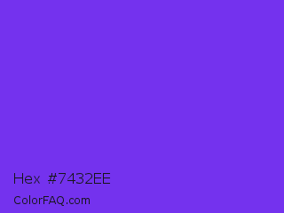 Hex #7432ee Color is a normal violet color and the nearest color is Blue Violet #8a2be2. Hex code #7432ee and RGB value is rgb(116,50,238). In RGB color space, this color is composed of 45% red, 20% green, 93% blue, In CMYK color space, this color is composed of 51% cyan, 79% magenta, 0% yellow , 7% black , In HSL color space, this color has a hue angle of 261° , 85% saturation and 56% lightness.