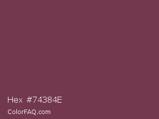 Hex #74384e Color is a normal rose color and the nearest color is Catawba #703642. Hex code #74384e and RGB value is rgb(116,56,78). In RGB color space, this color is composed of 45% red, 22% green, 31% blue, In CMYK color space, this color is composed of 0% cyan, 52% magenta, 33% yellow , 55% black , In HSL color space, this color has a hue angle of 338° , 35% saturation and 34% lightness.