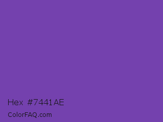 Hex #7441ae Color is a normal violet color and the nearest color is Studio #714ab2. Hex code #7441ae and RGB value is rgb(116,65,174). In RGB color space, this color is composed of 45% red, 25% green, 68% blue, In CMYK color space, this color is composed of 33% cyan, 63% magenta, 0% yellow , 32% black , In HSL color space, this color has a hue angle of 268° , 46% saturation and 47% lightness.