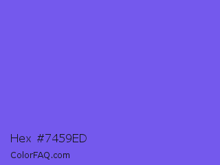 Hex #7459ed Color is a light indigo color and the nearest color is Medium Slate Blue #7b68ee. Hex code #7459ed and RGB value is rgb(116,89,237). In RGB color space, this color is composed of 45% red, 35% green, 93% blue, In CMYK color space, this color is composed of 51% cyan, 62% magenta, 0% yellow , 7% black , In HSL color space, this color has a hue angle of 251° , 80% saturation and 64% lightness.