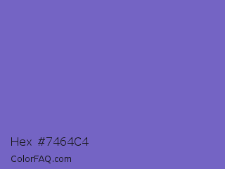 Hex #7464c4 Color is a normal indigo color and the nearest color is Blue Marguerite #7666c6. Hex code #7464c4 and RGB value is rgb(116,100,196). In RGB color space, this color is composed of 45% red, 39% green, 77% blue, In CMYK color space, this color is composed of 41% cyan, 49% magenta, 0% yellow , 23% black , In HSL color space, this color has a hue angle of 250° , 45% saturation and 58% lightness.