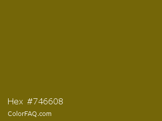 Hex #746608 Color is a dark yellow color and the nearest color is Spicy Mustard #74640d. Hex code #746608 and RGB value is rgb(116,102,8). In RGB color space, this color is composed of 45% red, 40% green, 3% blue, In CMYK color space, this color is composed of 0% cyan, 12% magenta, 93% yellow , 55% black , In HSL color space, this color has a hue angle of 52° , 87% saturation and 24% lightness.