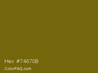Hex #74670b Color is a dark yellow color and the nearest color is Spicy Mustard #74640d. Hex code #74670b and RGB value is rgb(116,103,11). In RGB color space, this color is composed of 45% red, 40% green, 4% blue, In CMYK color space, this color is composed of 0% cyan, 11% magenta, 91% yellow , 55% black , In HSL color space, this color has a hue angle of 53° , 83% saturation and 25% lightness.